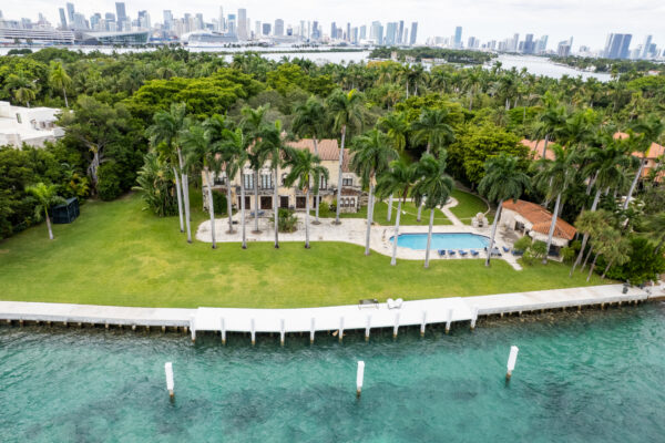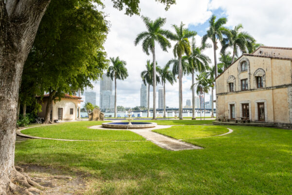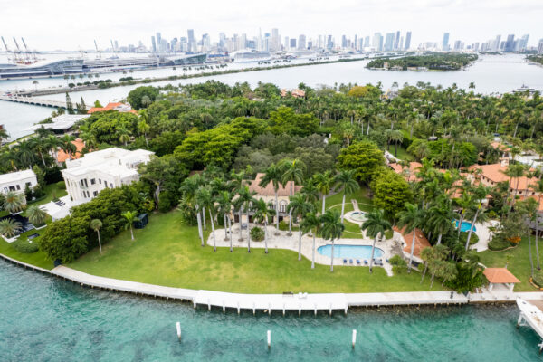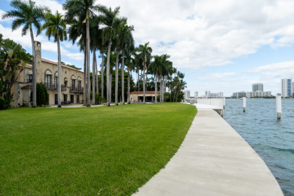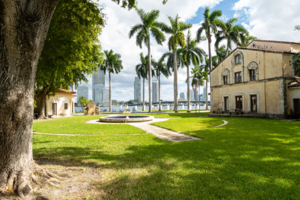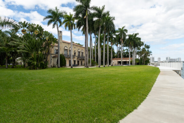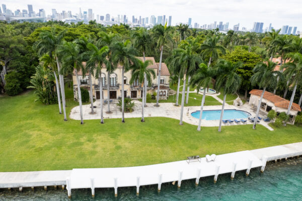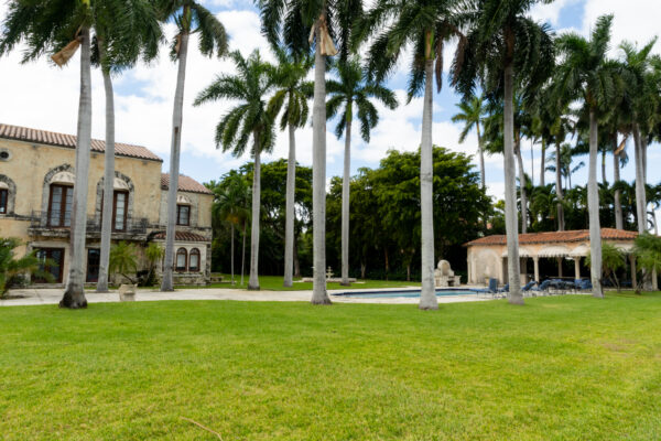 An oversized pool frames priceless panoramic views of the Miami skyline, creating a striking contrast between aristocratic architecture and the city beyond. This is not modern Miami — it is history and glamour, ideal for fashion, film, and refined events seeking privacy, presence, and distinction.